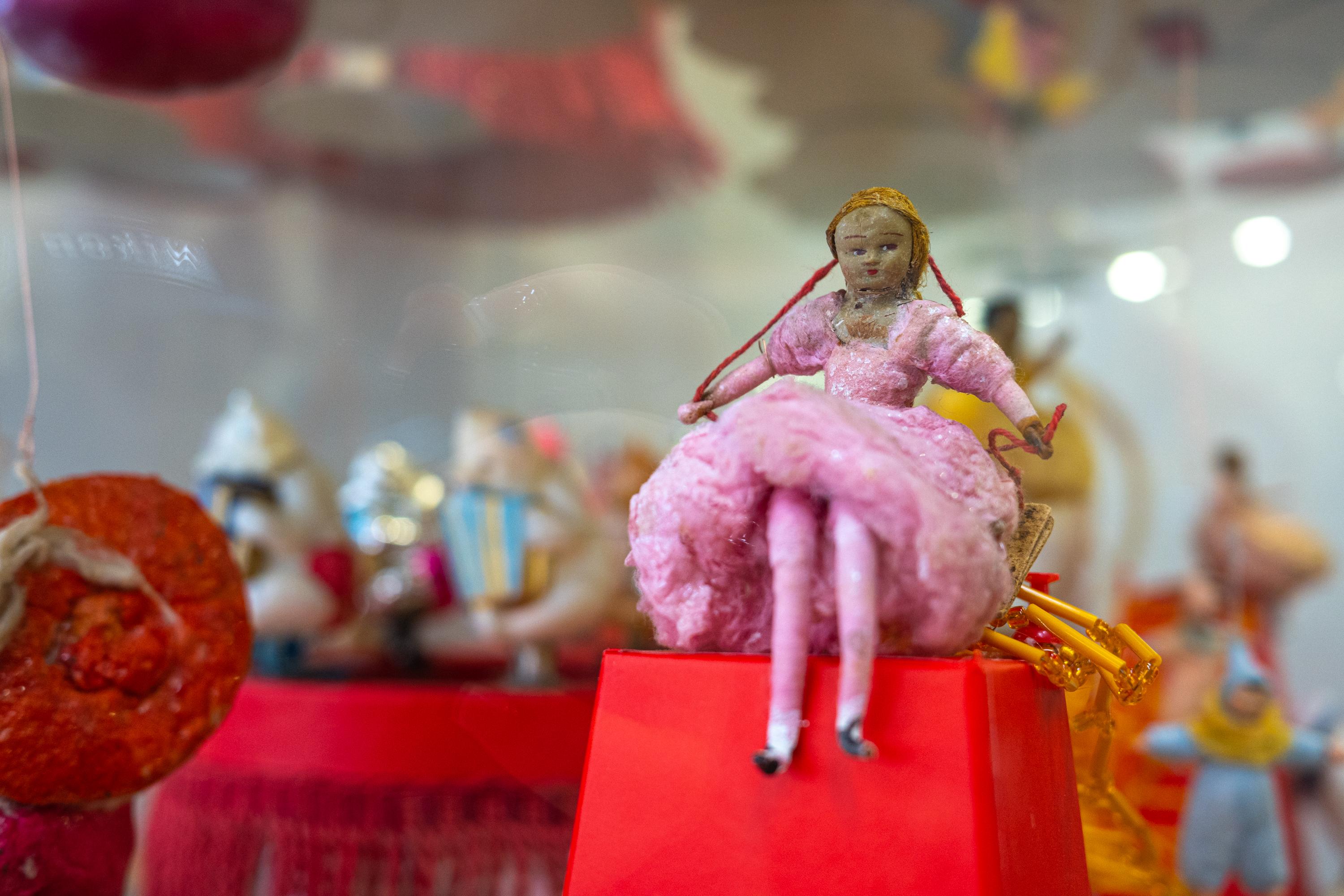 Необычные винтажные игрушки в этом сезоне демонстрировались на тематической выставке. Среди экспонатов были стеклянные бусы, огурцы и зайцы с прищепками, набор Чиполино в картонной упаковке, ватный Дед Мороз и хрупкие советские спутники. Тем, кто не успел её посетить, показали все экспонаты на фотографиях.