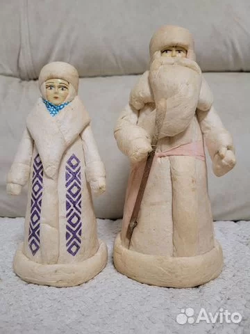 Винтажный набор «Дед Мороз и Снегурочка» 1988 года выпуска помогает воссоздать атмосферу прошлых новогодних праздников. Фигурки отличаются традиционными нарядами, изящным узором на одежде Снегурочки и посохом Деда Мороза. Такие редкие статуэтки, являющиеся частичкой истории, предлагаются за 10 869 рублей.