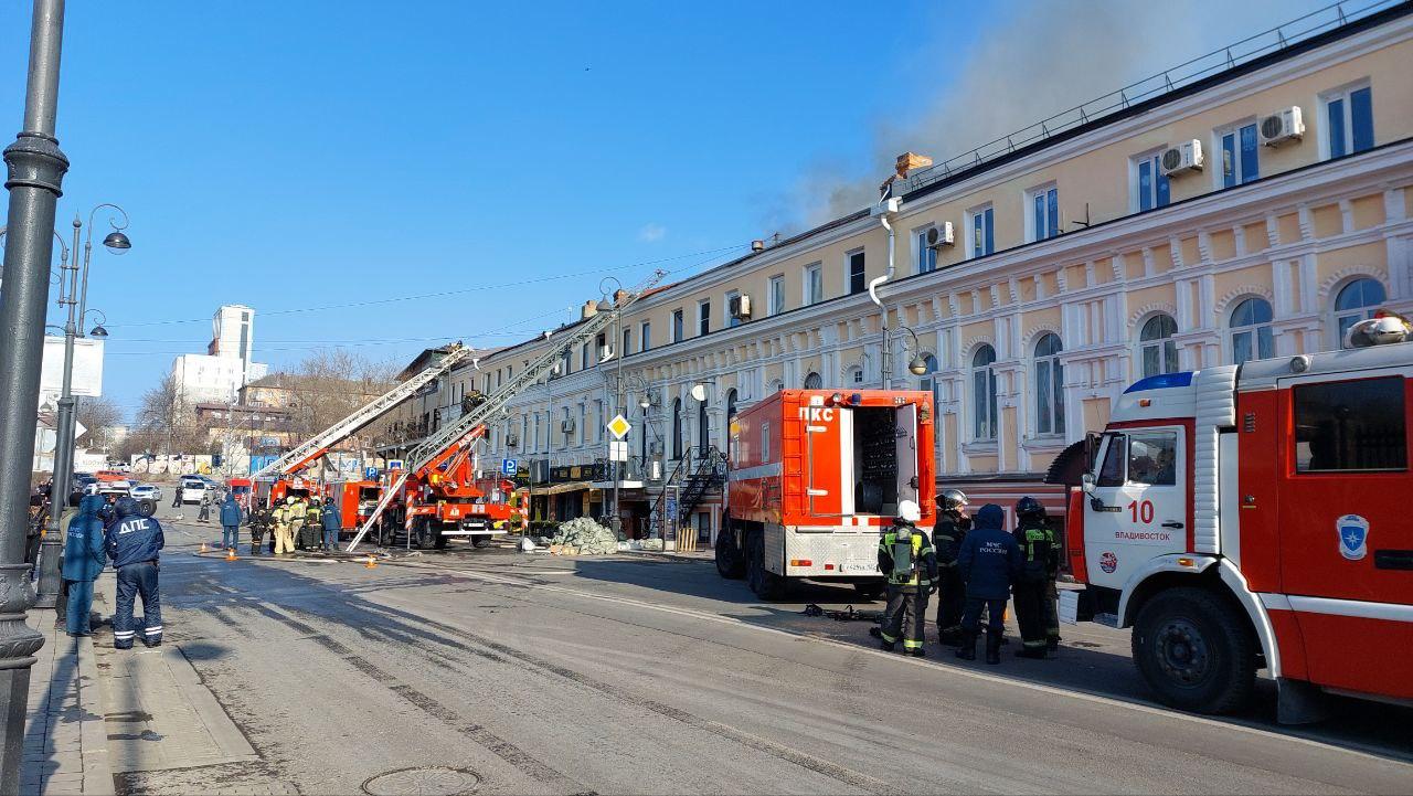 Возгорание в центре города началось 21 декабря. По данным пресс-службы МЧС по Приморскому краю, жертв и пострадавших нет. Из горящего здания эвакуировали 10 человек.